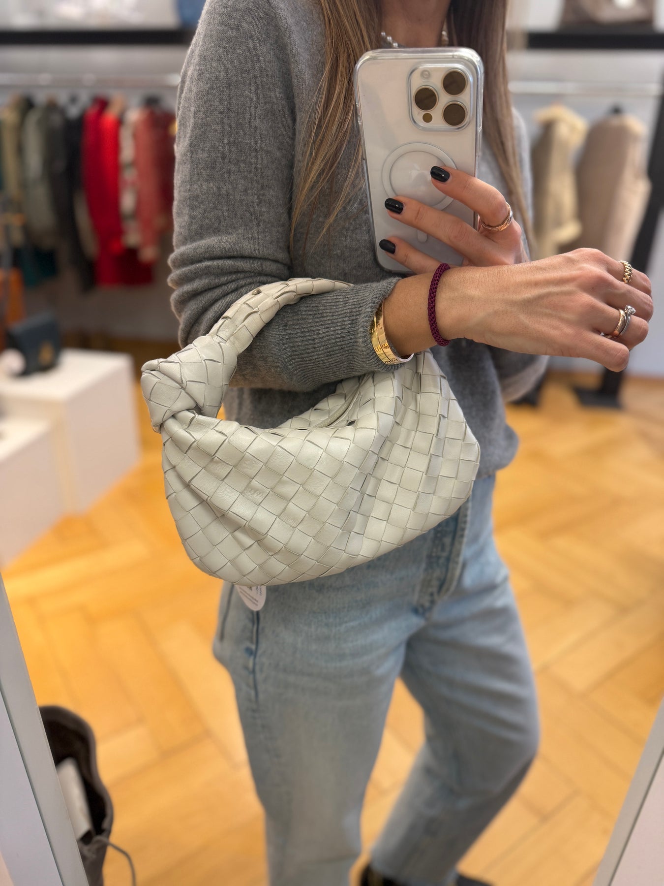 Hardware: Two-tone or mixed-metal chain with leather interwoven