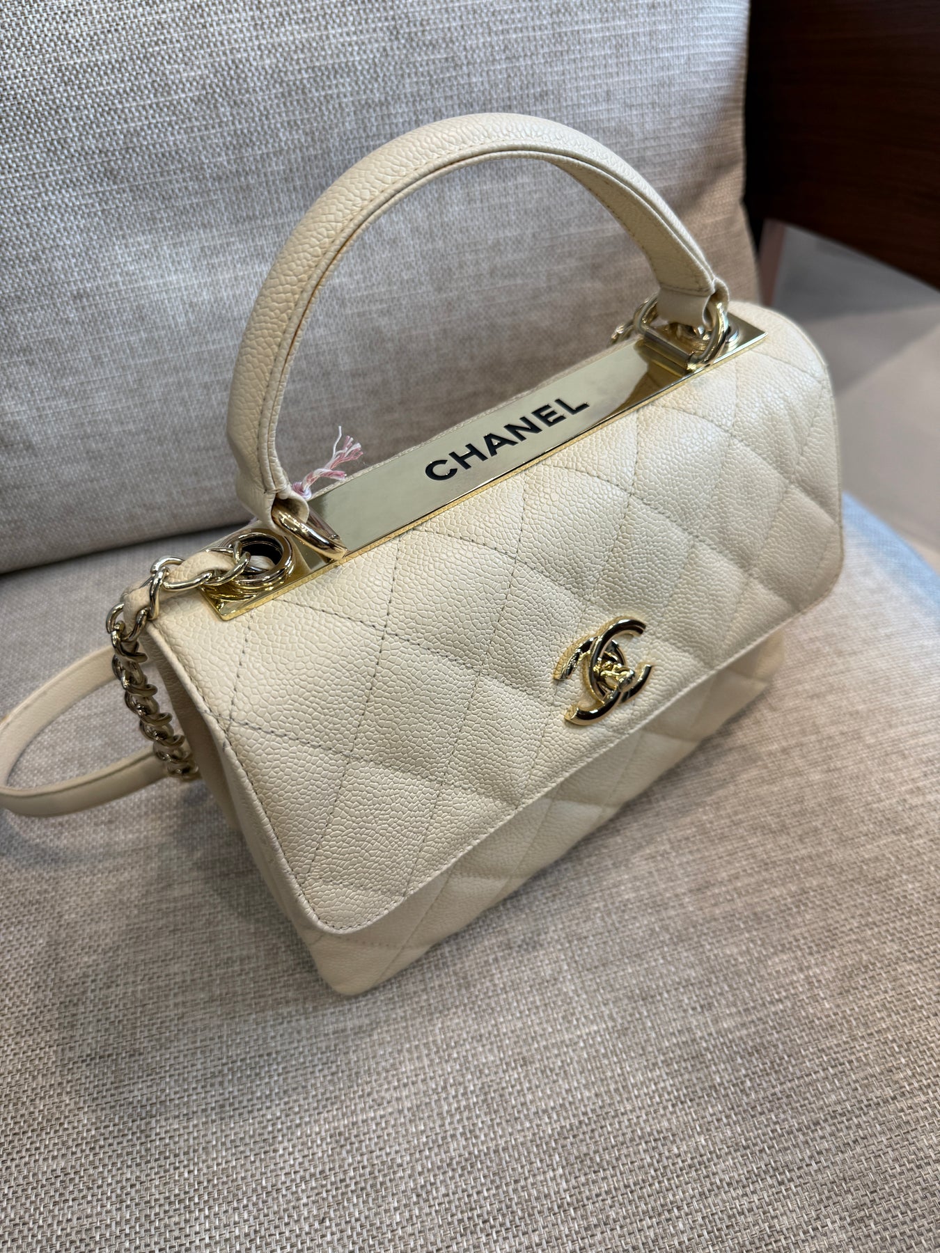 The multi-tone chain strap allows for multiple styling options — wear it crossbody, over one shoulder, or as a classic backpack. The Gabrielle line has become one of Chanel’s most recognizable contemporary icons, offering a perfect balance of functionality and chic appeal. A beautiful everyday companion for those who appreciate timeless design with a relaxed, fashion-forward twist.